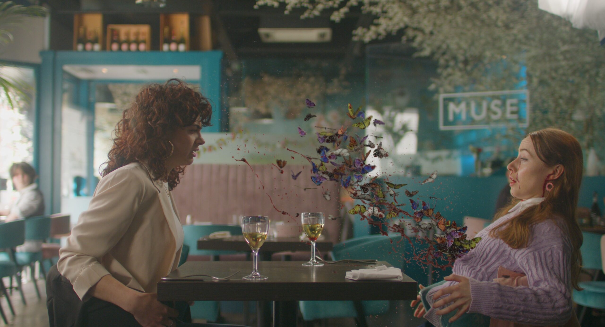 “Film Club was exciting to work on in terms of variety. There was a great mix of shots to work on, from clean up on the street outside Evie’s house, to finessing film projections, animating text message interactions and enhancing bursts of blood splatter. The work was dynamic and each sequence had its own challenge and energy.”